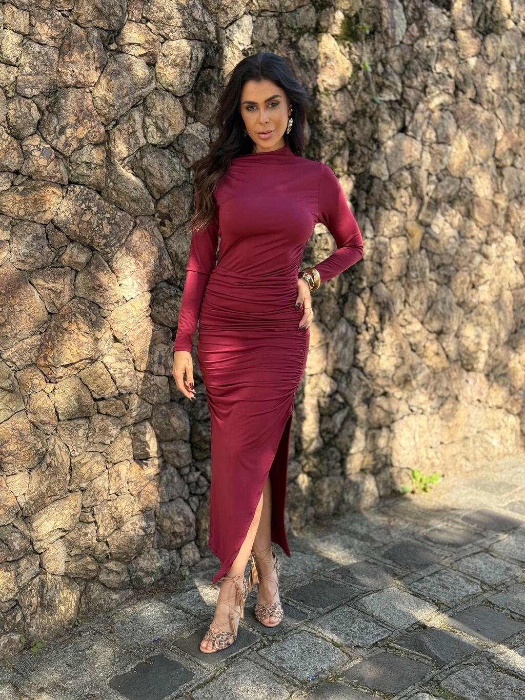 Vestido LIA – Elegância que abraça suas curvas Prepare-se para causar impacto com o vestido LIA. Confeccionado em tecido fluit, ele possui toque macio, caimento impecável e valoriza a silhueta com sua modelagem justa e confortável. O detalhe franzido nas laterais cria um efeito visual super favorecedor, enquanto a fenda lateral adiciona sensualidade na medida certa. Possui gola alta e mangas longas — perfeito para compor produções elegantes no inverno ou em eventos noturnos. Tamanho único com ótima elasticidade, vestindo bem diferentes tipos de corpo. Disponível nas cores: preto, marrom e marsala. Combine com botas ou salto alto e finalize com acessórios marcantes.
